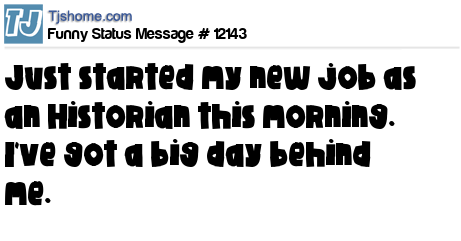 X just started my new job as an Historian this morning. I've got a big day behind me.
