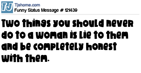 X is Two things you should never do to a woman is lie to them and be completely honest with them.