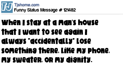 - # 121459 When I stay at a woman's house that I want to see again I always "accidentally" lose something there like my phone, my hat, or my dignity.
