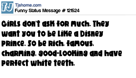 X says Girls don't ask for much. They want you to be like a Disney prince. So be rich, famous, charming, good-looking and have perfect white teeth.