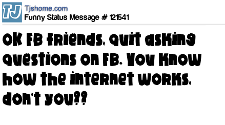 X says OK FB friends, quit asking questions on FB. You know how the internet works, don't you??