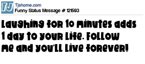 X Laughing for 10 minutes adds 1 day to your life. Follow me and you'll live forever!