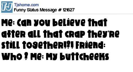 X Me: Can you believe that after all that crap they're still together!?! Friend: Who ? Me: My buttcheeks