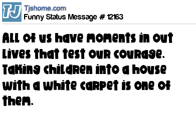 X says All of us have moments in out lives that test our courage. Taking children into a house with a white carpet is one of them.