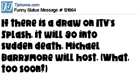 X says If there is a draw on ITV's Splash, it will go into sudden death. Michael Barrymore will host. (What, too soon?)
