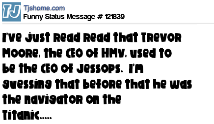 X is I've just read read that Trevor Moore, the CEO of HMV, used to be the CEO of Jessops. I'm guessing that before that he was the navigator on the Titanic.....
