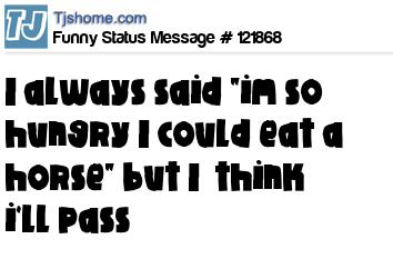 X says i always said "im so hungry I could eat a horse" but I  think i'll pass