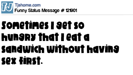 X says Sometimes I get so hungry that I eat a sandwich without having sex first.