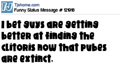 X says I bet guys are getting better at finding the clitoris now that pubes are extinct.
