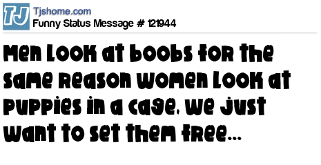 X is Men look at boobs for the same reason women look at puppies in a cage, we just want to set them free...