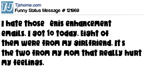 X I hate those þènîs enhancement emails. I got 10 today. Eight of them were from my girlfriend. It’s the two from my mom that really hurt my feelings.
