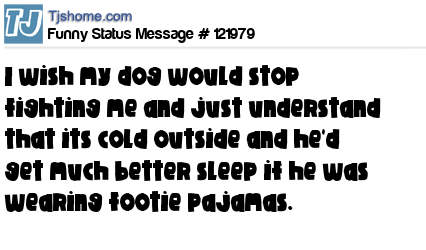 X I wish my dog would stop fighting me and just understand that its cold outside and he'd get much better sleep if he was wearing footie pajamas.