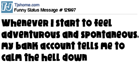 X is whenever I start to feel adventurous and spontaneous, my bank account tells me to calm the hell down