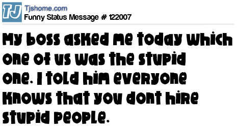 - # 210941 My boss asked me who was stupid, me or him. I told him that we all know he doesn't employ stupid people.