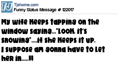 X My wife keeps tapping on the window saying..."look, it's snowing"....if she keeps it up, I suppose am gonna have to let her in.....!!