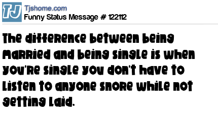 X says The difference between being married and being single is when you're single you don't have to listen to anyone snore while not getting laid.