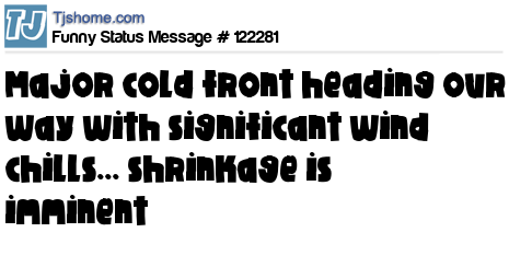 X says Major cold front heading our way with significant wind chills... shrinkage is imminent