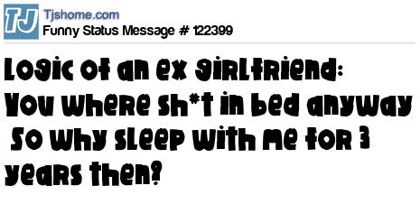 X Logic of an ex girlfriend: You where sh*t in bed anyway So why sleep with me for 3 years then?