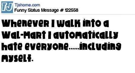 X Whenever I walk into a Wal-Mart I automatically hate everyone.....including myself.