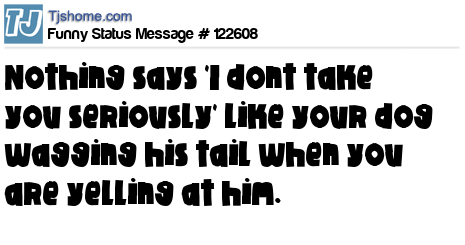 X says Nothing says 'I dont take you seriously' like your dog wagging his tail when you are yelling at him.