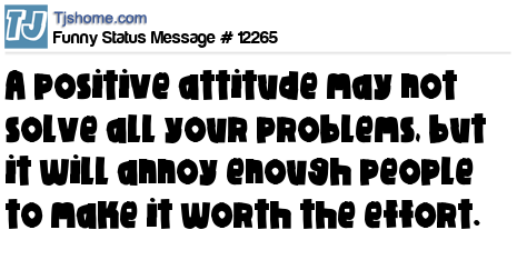 - # 41330 A positive attitude may not solve all your problems, but it will annoy enough people to make it worth the effort.