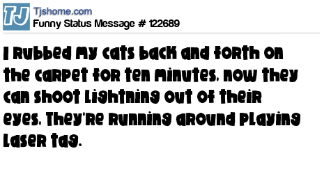 - # 122660 I just rubbed my cat back and forth on the carpet for 10 minutes,,, and now he can shoot lightning bolts out of his mouth.