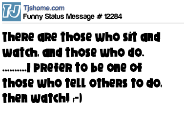 X says There are those who sit and watch, and those who do. ..........I prefer to be one of those who tell others to do, then watch! ;-)