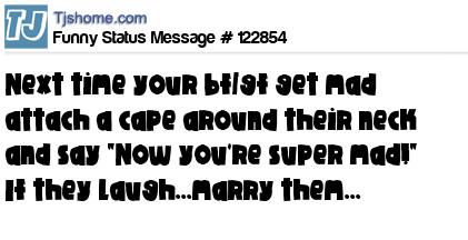 X is Next time your bf/gf get mad attach a cape around their neck and say "Now you're super mad!" If they laugh...marry them...