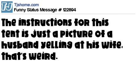 X says The instructions for this tent is just a picture of a husband yelling at his wife, that's weird.