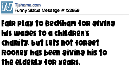 X Fair play to Beckham for giving his wages to a children's charity, but lets not forget Rooney has been giving his to the elderly for years.