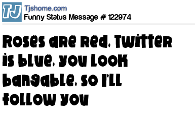 - # 76502 Roses are red, Facebook is blue. You look bangable, so I'll add you.
