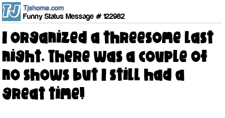 - # 97879 I organized a threesome last night....there were a couple of no shows, but I still had a good time