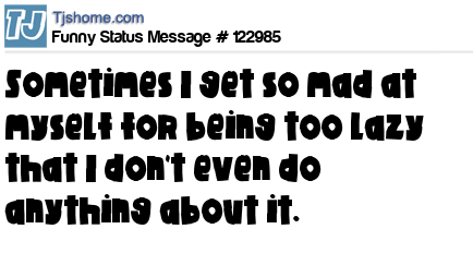 X says Sometimes I get so mad at myself for being too lazy that I don't even do anything about it.