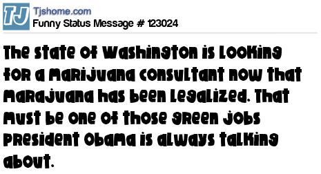 X The state of Washington is looking for a marijuana consultant now that marajuana has been legalized. That must be one of those green jobs president Obama is always talking about.