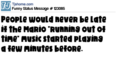 X says People would never be late if the Mario "running out of time" music started playing a few minutes before.
