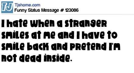 X says I hate when a stranger smiles at me and I have to smile back and pretend I'm not dead inside.