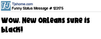 - # 109964 Memo to New Orleans: You can't turn the Superdome into a sewer this time., emergency shelter will be at the black crack neighbors house!