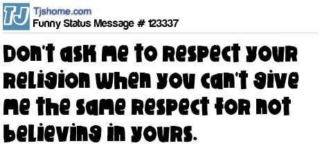 X Don't ask me to respect your religion when you can't give me the same respect for not believing in yours.