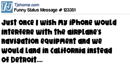 X Just once I wish my iPhone would interfere with the airplane's navigation equipment and we would land in California instead of Detroit....