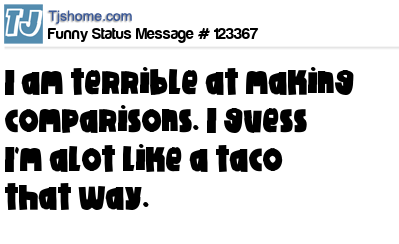 X is I am terrible at making comparisons. I guess I'm alot like a taco that way.