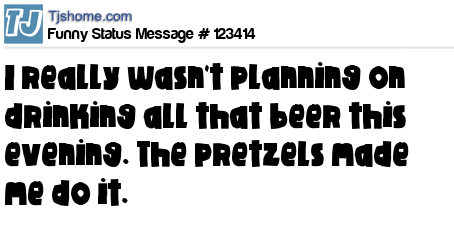 X I really wasn't planning on drinking all that beer this evening. The pretzels made me do it.