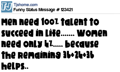 X Men need 100% talent to succeed in life....... Women need only 4%..... because the remaining 36+24+36 helps..