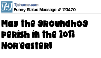 - # 163852 Tuesday is Groundhog Day, I'm very excited. I get up early on Groundhog Day...... I stuff the groundhog and I put it in the crock pot on low, and by the time I get home from work it's ready to go.