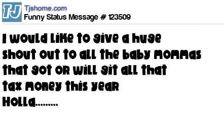 X says I would like to give a huge shout out to all the baby mommas that got or will git all that tax money this year Holla.........