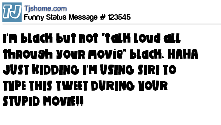 X says I'm black but not "talk loud all through your movie" black. HAHA JUST KIDDING I'M USING SIRI TO TYPE THIS TWEET DURING YOUR STUPID MOVIE!!