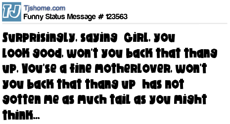 X says surprisingly, saying “Girl, you look good, won't you back that thang up, You'se a fine motherlover, won't you back that thang up” has not gotten me as much tail as you might think…