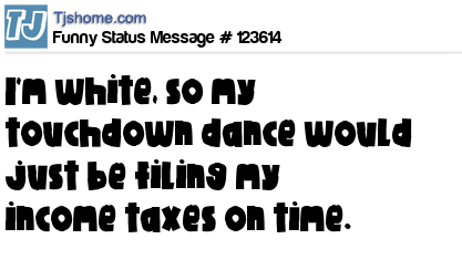 X says I'm white, so my touchdown dance would just be filing my income taxes on time.