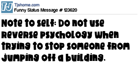 X says Note to self: Do not use reverse psychology when trying to stop someone from jumping off a building.