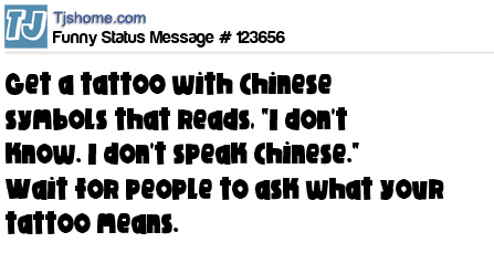 - # 139280 Get a tattoo with Chinese symbols that reads, "I don't know. I don't speak Chinese."... Wait for people to ask what your tattoo means.
