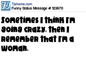 X says Sometimes I think I'm going crazy, then I remember that I'm a woman.